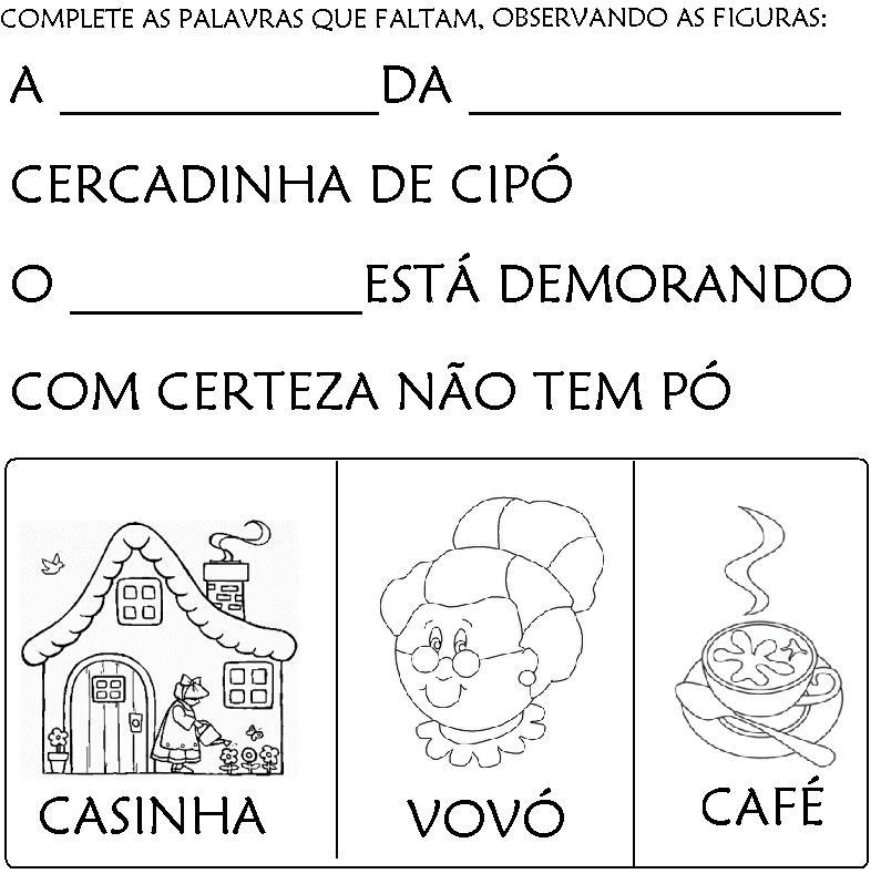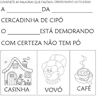Esta e a anterior, são boas para intervir com os alunos silábicos com valor e silábico-alfabéticos, se as respostas forem trabalhadas com o alfabeto móvel antes de registradas na folha.