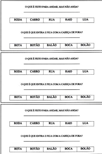 Esta e a anterior, são boas para intervir com os alunos silábicos com valor e silábico-alfabéticos, se as respostas forem trabalhadas com o alfabeto móvel antes de registradas na folha.